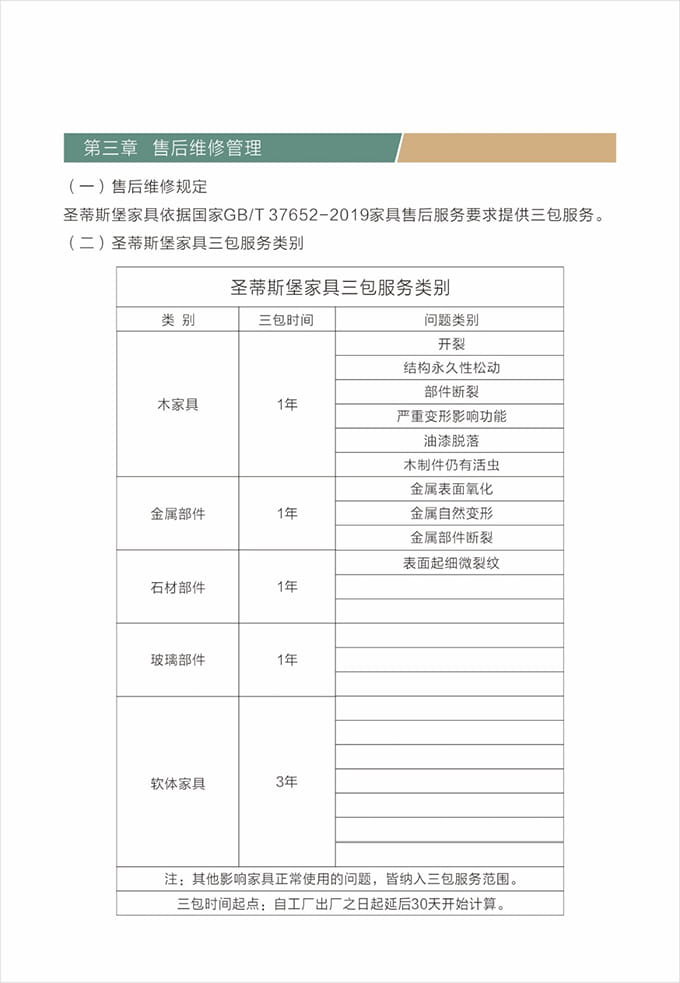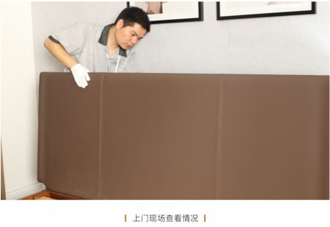 產品處理完畢后必須一站式通檢,指導客戶使用,并將服務過程中產生的垃圾隨手帶走,家具維修完畢后,應用毛巾將家具擦拭一遍,確保產品清潔。