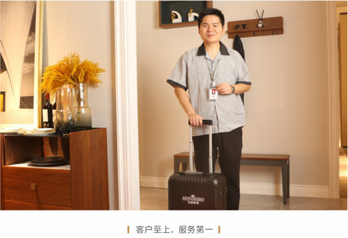 安裝并檢查完所有工作后,需與客戶清點并確認產品,將所有帶電源的家具插上電源,告知客戶家具使用方法和功能及保養知識、注意事項等。所有帶功能的產品需演示給客戶看。例: