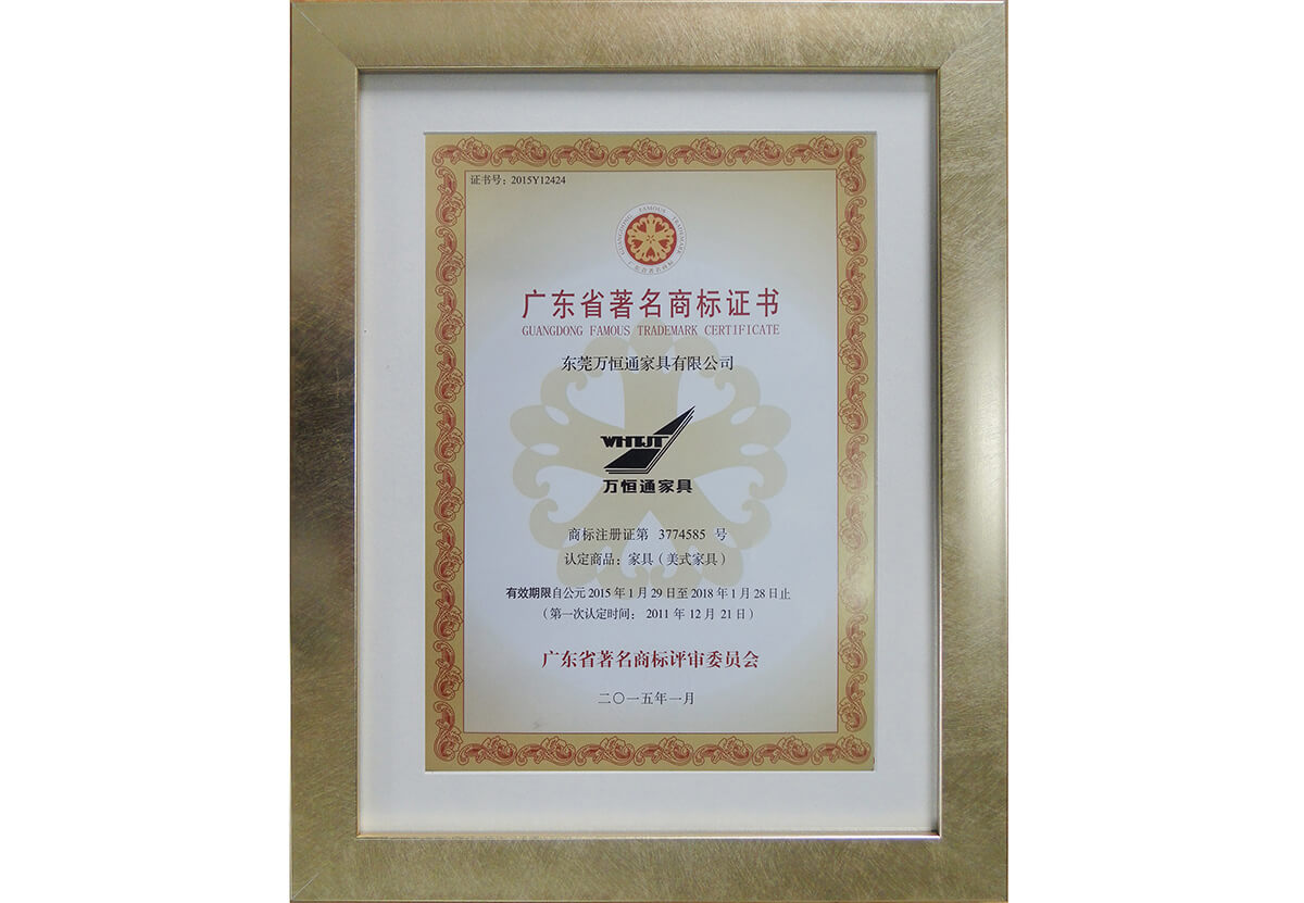 廣東省著名商標證書