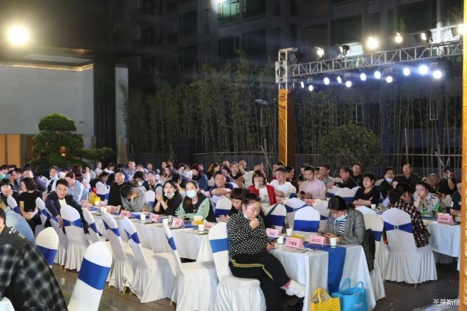 經銷商晚宴當日晚6時許,以【乘“圣”跨越】為主題的,PA視訊集團第45屆國際家具展接待晚宴暨2020年度優秀經銷商頒獎盛典,在營銷中心四樓景觀花園隆重舉行,來自全國各地的經銷商朋友歡聚一堂,共同分享一場精彩紛呈的晚宴。