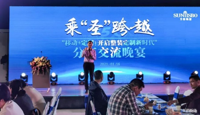 華燈璀璨的開場儀式,點燃了現場如火如荼的氣氛。PA視訊集團營銷總經理陳玉偉先生對晚會進行了主題發言,他對2020年的營銷工作進行了總結,并著重從營銷工作部署、重點項目開展、產品整合、拎包幫扶、渠道運營和移動+定制整裝優勢等方面對2021年的營銷工作做了全面的統籌規劃。同時,他還講解了“美國夢凱莎床墊”新品的產品工藝、市場優勢、產品定位,使經銷商對我們的新產品擁有更深入的認識和了解。