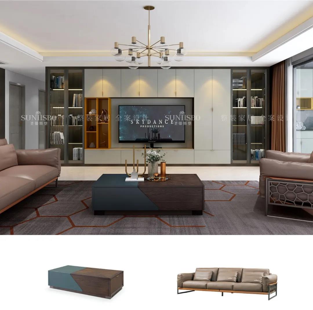客廳一面置頂?shù)亩ㄖ乒?,大大增加了空間收納,也將電視背景墻的觀賞性發(fā)揮到極致。淺灰與明亮橙的“動(dòng)靜”屬性,與沙發(fā)上的愛馬仕橙相呼應(yīng),從空間中漫溢出歡樂和跳動(dòng)的樂章,回響生活中那一抹絢麗和精致,同時(shí)也擁有著對(duì)立且和諧的高級(jí)范兒。