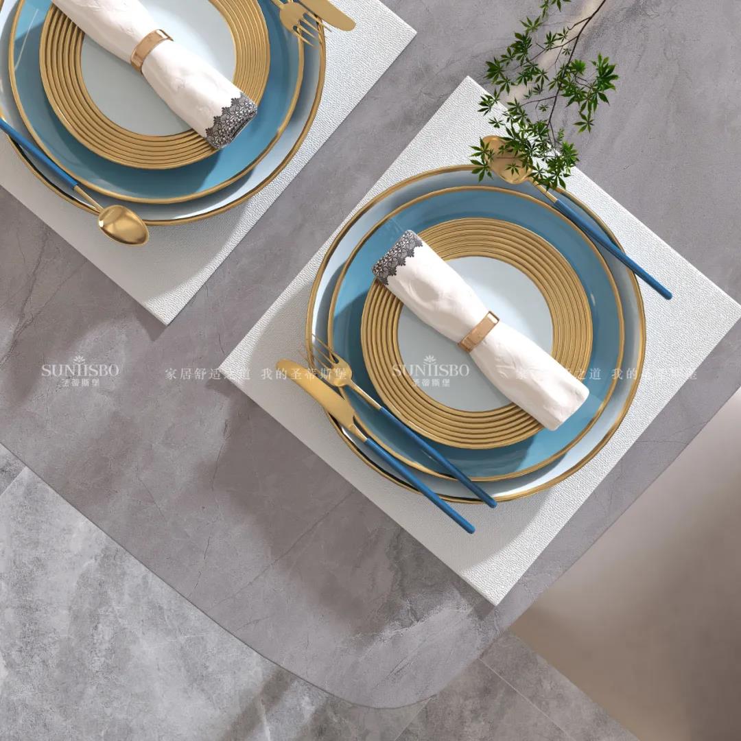 簡(jiǎn)奢餐桌與玻璃大立柜,將空間簡(jiǎn)化,帶來(lái)了純粹的空間視覺(jué)效果。金色鑲邊的點(diǎn)綴,為這份純粹增添了奢華質(zhì)感。極簡(jiǎn)玻璃定制柜體,拉開(kāi)了大空間的開(kāi)闊視野,光影交匯間,硬朗的氣質(zhì)與柔和的自然光產(chǎn)生了趣味的互動(dòng),為空間提供了更具藝術(shù)張力的奢享用餐體驗(yàn)。