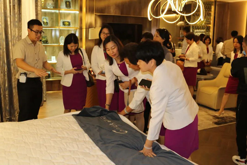 嘉賓們感受著夢凱莎床墊帶來的柔軟舒適感,她們紛紛體驗了夢凱莎床墊的透氣性與科技感,對夢凱莎的智能化系統有了更深入的了解。