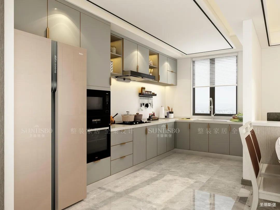2. 打通廚房和餐廳,餐桌旁設置西廚區域。