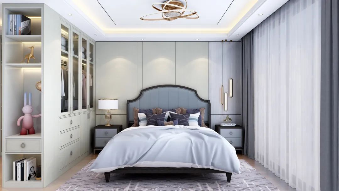 優(yōu)雅沉靜的霧霾藍(lán)床架,干凈利索的線條設(shè)計(jì),天然的皮革紋路,與原木色的墻面相呼應(yīng),純粹、樸實(shí),營(yíng)造出輕奢簡(jiǎn)約的氛圍,滿足了屋主對(duì)空間的無(wú)限暢想。
