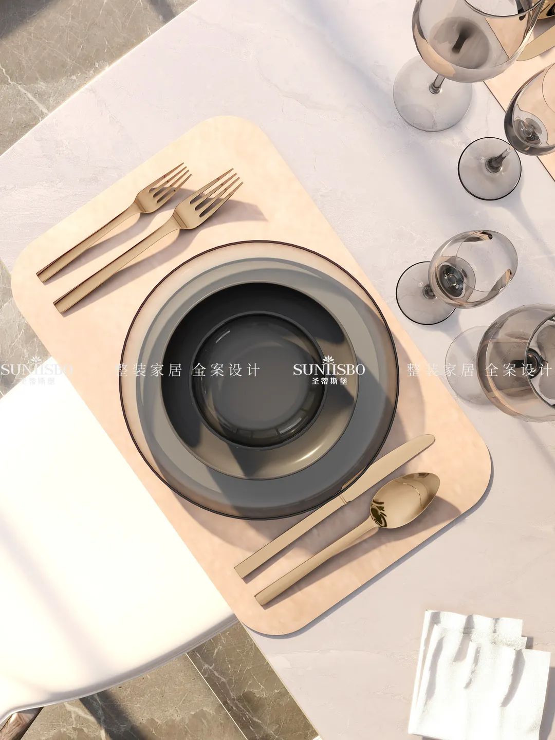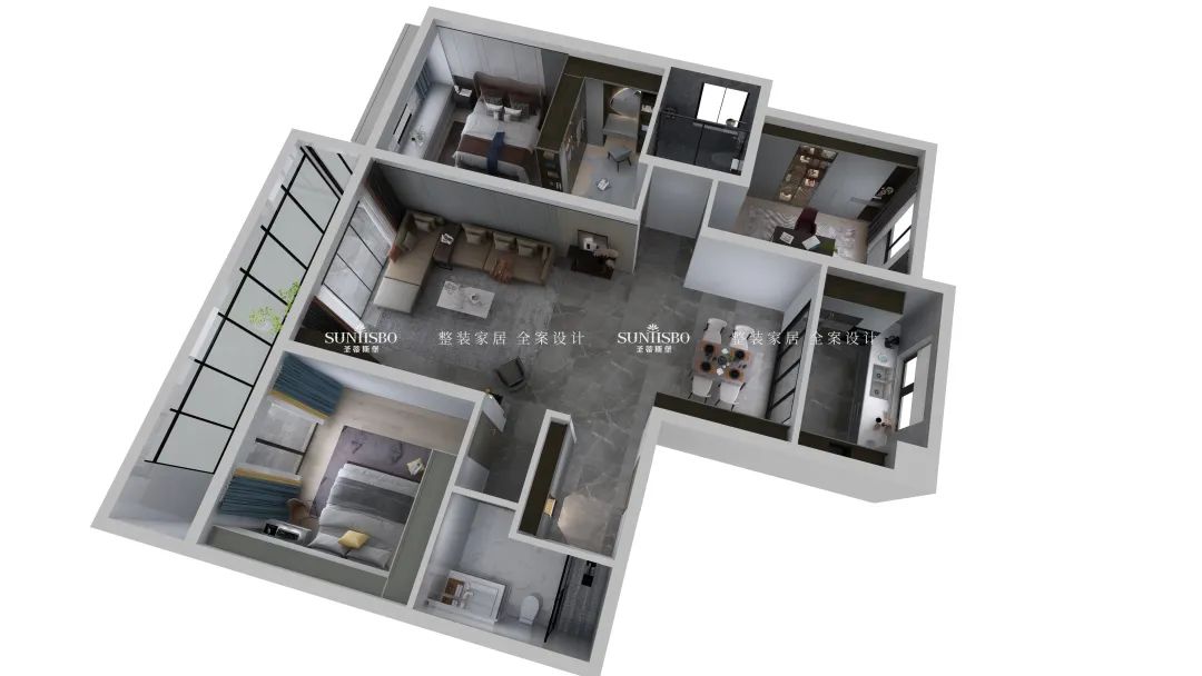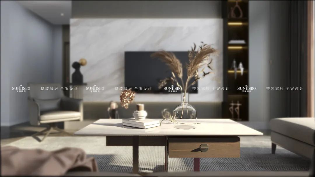 本案業主本人是一對年輕的90后小夫妻,他們對設計要求較高,崇尚極簡主義生活,也具有一定的藝術審美標準。本案設計師與業主溝通后,設計初稿就得到肯定,在形式材質上大量運用石材、木材、玻璃、皮革,搭配簡約的家具,注重整體統一,表達居住者和諧統一又獨特審美的生活方式。