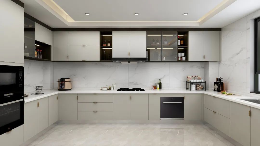 廚房以自然簡約的高級色調塑造出時尚的效果,